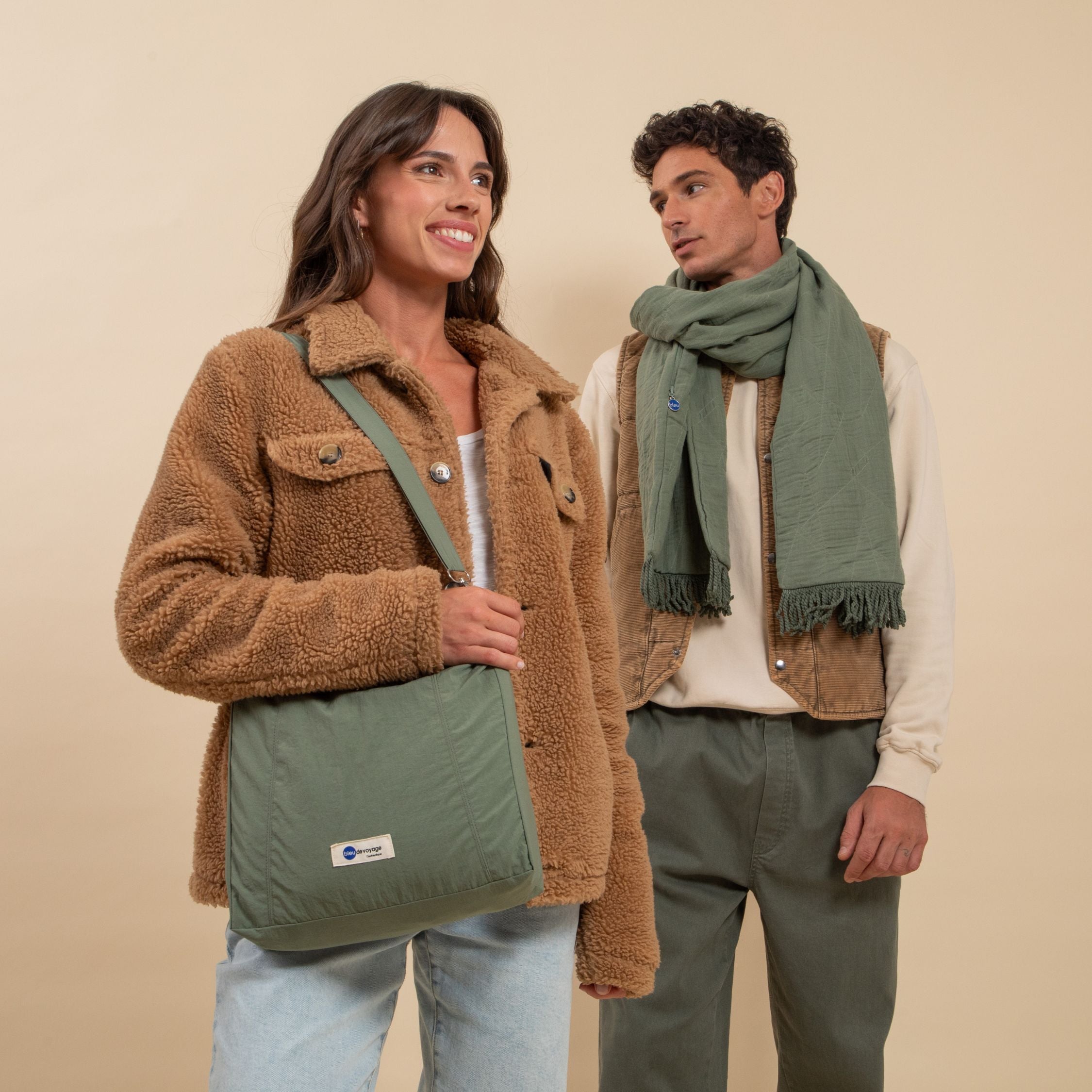 1 écharpe achetée = 1 sac offert grâce à sa transformation ingénieuse.
