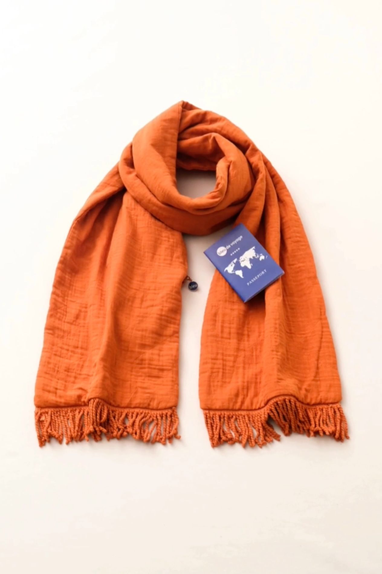 1 écharpe achetée = 1 sac offert grâce à sa transformation ingénieuse.
